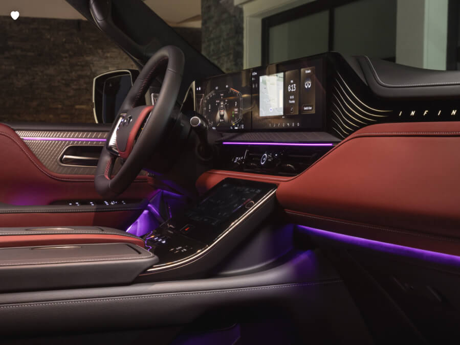 Feature availability is dependent on vehicle model, trim level, packaging and options. Trial included with vehicle purchase. Consumer activation of INFINITI InTouch® Services package required. Compatible connected device and wireless network may be required. Refer to connected device’s owner’s manual for details. Late availability for some features. Driving is serious business and requires your full attention. Only use features and connected devices when safe and legal to do so. Some features, including automatic crash notification and SOS, are dependent upon the telematics device being in operative condition, its ability to connect to a wireless network, compatible wireless network availability, navigation map data and GPS satellite signal receptions, the absence of which can limit or prevent the ability to reach Customer Care or receive support. GPS mapping may not be detailed in all areas or reflect current road status. Never program GPS while driving. Only use Remote Engine Start and Remote Horn features in accordance with any laws, rules or ordinances in effect in your vehicle’s location. Some services and features are provided by and dependent on third party service providers and not INFINITI. Should such service providers terminate or restrict service or features, service or features may be suspended or terminated without notice or with no liability to INFINITI or its partners or agents. Services and features may require compatible cellular network provided by independent companies not within INFINITI or its partners’ or agents’ control. Cellular network signal strength may vary and may not be available in all areas or at all times. Services and features may not function if cellular network is unavailable, restricted, or terminated. INFINITI and its partners or agents are not responsible for associated costs or other third-party changes that may be required for continued operation due to cellular network unavailability, restriction, or termination (including equipment replacements/upgrades, if available, or roaming charges on alternative networks). Technology is evolving, and changes by independent companies are not within INFINITI’s or its partners’ or agents’ control. Enrollment, owner consent, personal identification number (PIN), and subscription agreement may be required to receive full suite of features and services. Trial periods (if applicable) begin on the date of vehicle purchase or lease of a new INFINITI. Trial periods and feature availability may be subject to change at any time and may be subject to early termination without notice. Required subscriptions may be sold separately for each available feature or service after trial period ends, and may continue until you call service provider to cancel. Installation costs, one-time activation fee, other fees and taxes may apply. Fees and programming subject to change. Feature may be subject to age restrictions in some areas. Subscriptions governed by service provider’s subscription agreement, terms and conditions and privacy statements available at service provider’s website. Text rates or data usage may apply. INFINITI InTouch® with WiFi terms and conditions of subscriber agreement apply.Trial is included with vehicle purchase on equipped new INFINITI vehicles. Once your vehicle has exceeded the coverage parameters of the roadside assistance benefits included with your vehicle purchase, you will be responsible for any charges incurred by obtaining roadside assistance for your vehicle. For complete information concerning warranty coverage, conditions and exclusions, please see your INFINITI dealer and read the warranty information booklet. The INFINITI names, logos and slogans are trademarks owned by or licensed to Nissan Motor Co. Ltd. or its North American subsidiaries. Other trademarks and trade names are those of their respective owners. Google, Android, YouTube, Android Auto and other marks are trademarks of Google LLC. Compatible Android phone and compatible active data plan required. Apple CarPlay is a trademark of Apple Inc. Amazon, Alexa, Echo, and all related marks are trademarks of Amazon.com, Inc. or its affiliates. For important safety information, system limitations, and additional operating and feature information, see dealer, owner’s manual, or https://www.infinitiusa.com/intouch/legal.html.